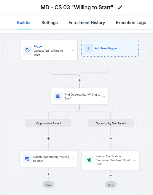 3. "Willing to Start" Progression - Tag-based automation that moves patients forward in pipeline
