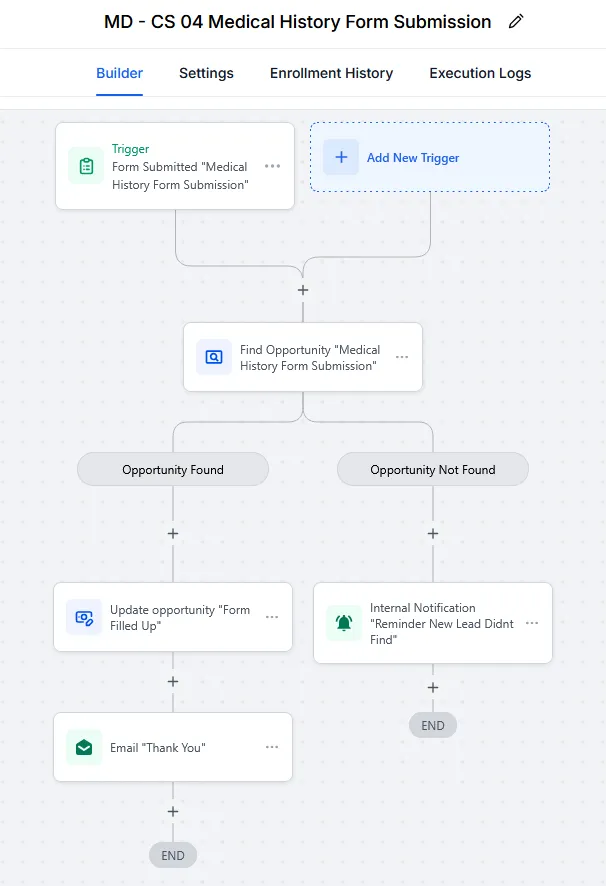 Smart triggers (form submissions, appointments, tags, stage changes)
