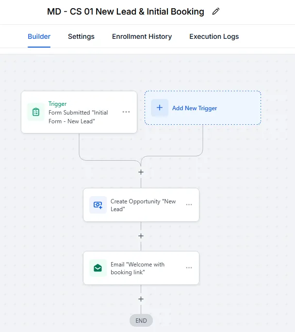 1. New Lead Capture - Auto-creates opportunities and sends welcome email with booking link instantly